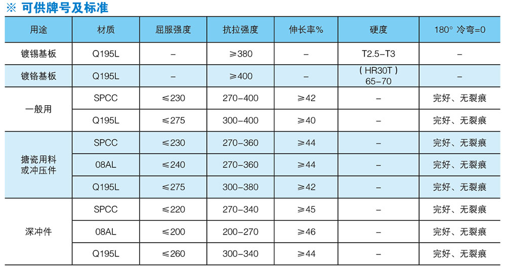 3、牌號(hào):Q195A-Q235A、Q195AF-Q235AF、Q295A(B)-Q345 A(B);SPCC、SPCD、SPCE、ST12-15;DC01-06